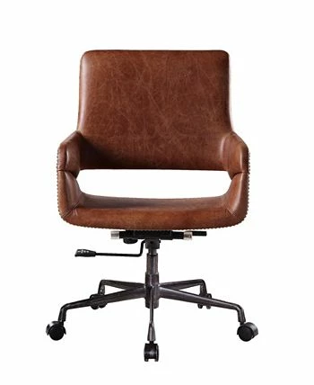 Enjoy the updated mod look of the kamau industrial adjustable office chair. This vintage inspired-inspired office chair has a back cutout covered in vintage inspired cocoa top grain leather. Adjustable height and 360-degree swivel make this chair as functional as it is stylish.