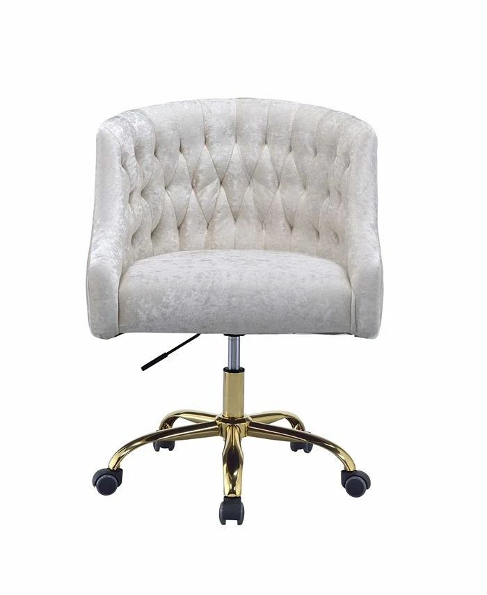 Stylize your office with the functional and beautiful Alessio office chair. Wrapped vintage-like cream velvet, this chair is designed to maximize comfort and coziness. With the swivel and adjustable height, the transitional style will make this a perfect piece in your office.