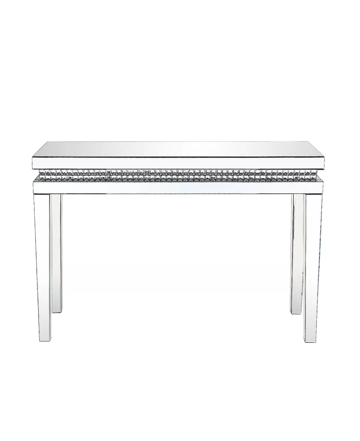 Shining in the Hollywood glamour style, the Lotus sofa table will be an ultimate statement piece for your dreamy living room. This mirrored furniture features reflective surface for a multi-layered look enhancing its modern and glamorous design.