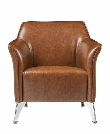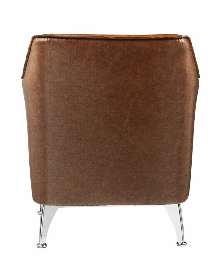 The Teague chair is upholstered in a rich brown polyurethane and rests on angular metal legs, creating a vintage inspired look. This stylish chair features a unique flared armrest design and has full foam cushion seating providing the ultimate in comfort.