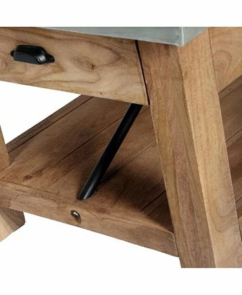 Zinc metal mixed with wood and metal accents lends modern industrial style to your living space. This table offer a balance of sturdy and solid with the lightness of the zinc metal tops, the cross bar accent in the back offers a unique touch.
