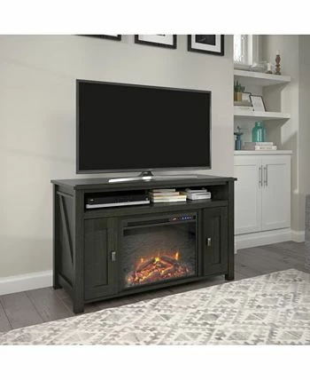 - Bring the outdoors in with the rustic look of the Ameriwood Home Winthrop electric fireplace TV console for TVs up to 50″ wide or 55 lbs