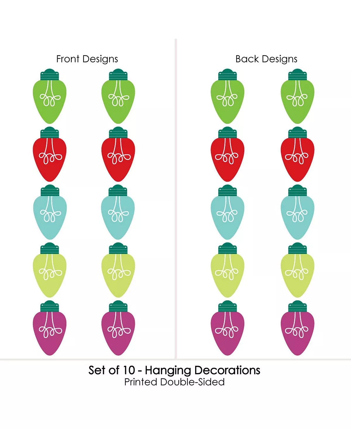 This set of 10 hanging porch & yard decorations is a festive way to decorate. Simply thread the included cording into the small holes at the top of each decoration and hang from trees, porches, or the ceiling. Each hanging decoration is printed on both sides so they will look great at any location.