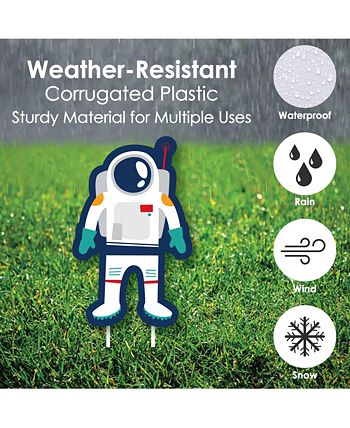 An extraordinary yard sign is sure to impress your guests. This 8-piece set of lawn signs is professionally printed. Each shape comes with two stakes, making it easy to display. Waterproof plastic and weather resistant, perfect for short-term display but can be used again and again with proper care.