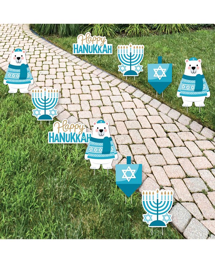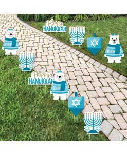 - 10 Signs Include: 3 – Menorah Shapes, 2 “Happy Hanukkah” Shapes, 3 – Polar Bear Shapes, and 2 – Dreidel Shapes