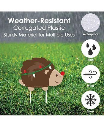 An extraordinary yard sign is sure to impress your guests. This 8-piece set of lawn signs is professionally printed. Each shape comes with two stakes, making it easy to display. Waterproof plastic and weather resistant, perfect for short-term display but can be used again and again with proper care.
