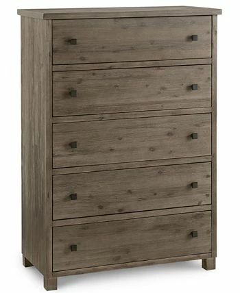 Timeless rustic beauty in a modern package. The naturally beautiful taupe wire brushed finish with grey undertones of this 3-piece solid acacia bedroom set highlight its natural knots offering an appealing aged appearance as its crisp, clean-cut lines evoke modern styling. The 5-drawer design of the chest features felt-lined top drawers and dust proof bottom drawers providing ample space and protection for your wardrobe.