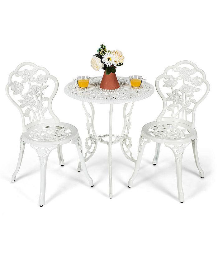 - Look closely, you will see those vivid roses bloom on this garden bistro set.