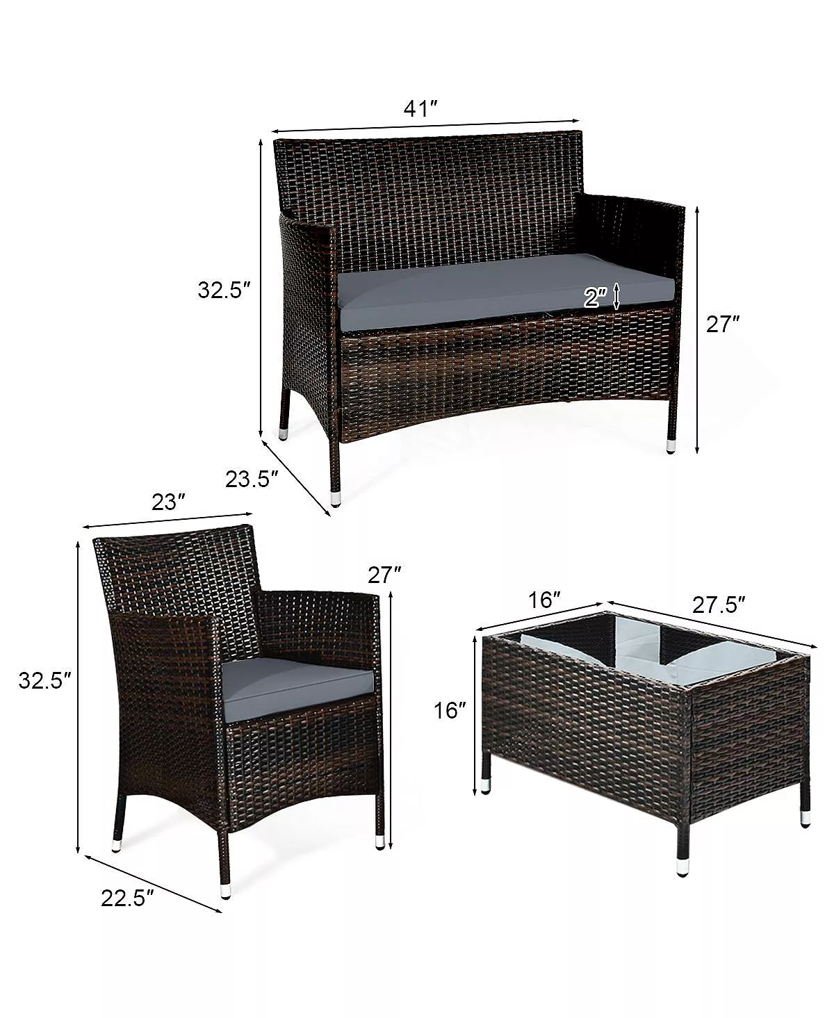 This is our 4 pieces rattan furniture set, including 1 loveseat, 2 single sofas and 1 tea table with glass top. This furniture set is very useful.