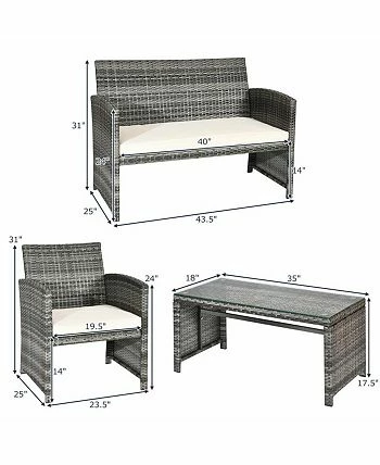 - Comes with thick padded cushions, this 4-piece patio furniture set will provide you an extraordinary comfort experience.