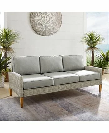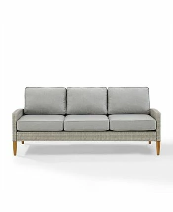 Ideal for lounging solo or shooting the breeze with friends, the Capella sofa combines all-weather resin wicker with quick-drying olefin fabric cushion covers. The sofa’s classic tapered legs are sturdy steel painted to look like real wood, making it a unique outdoor essential.