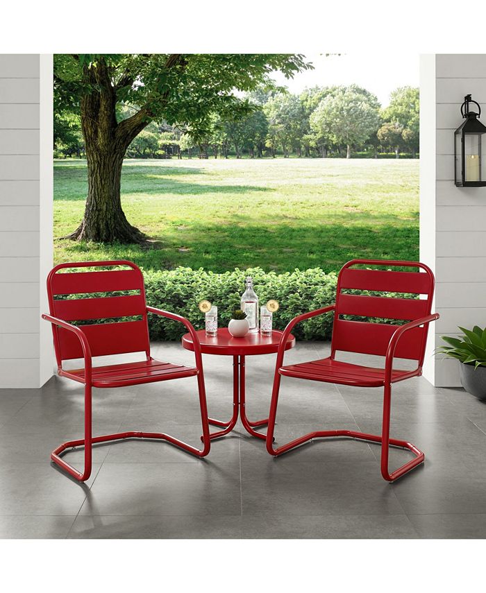 The Brighton 3-piece metal outdoor conversation seating set includes two chairs and a side table. Inspired by vintage designs, this ergonomic set offers time-tested comfort. Minimal maintenance and maximum durability are ensured with steel construction and a UV-resistant powder coating.