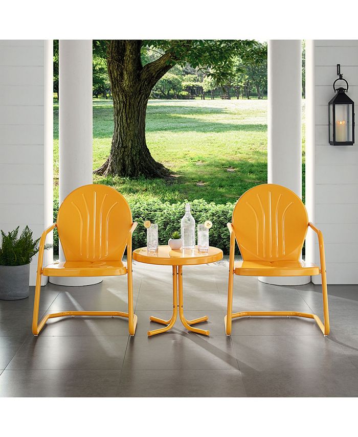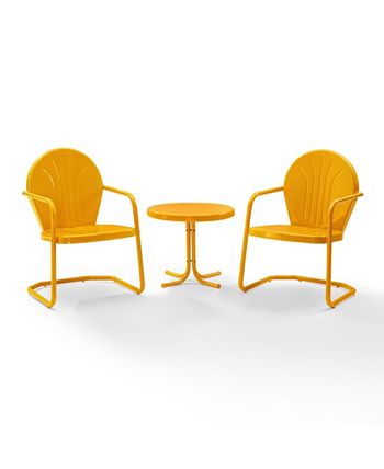 Constructed of sturdy steel with a classic retro design, the Griffith 3 piece set can be enjoyed for years to come. The furniture’s non-toxic, powder-coated finish is available in various colors to complement your outdoor accessories.