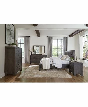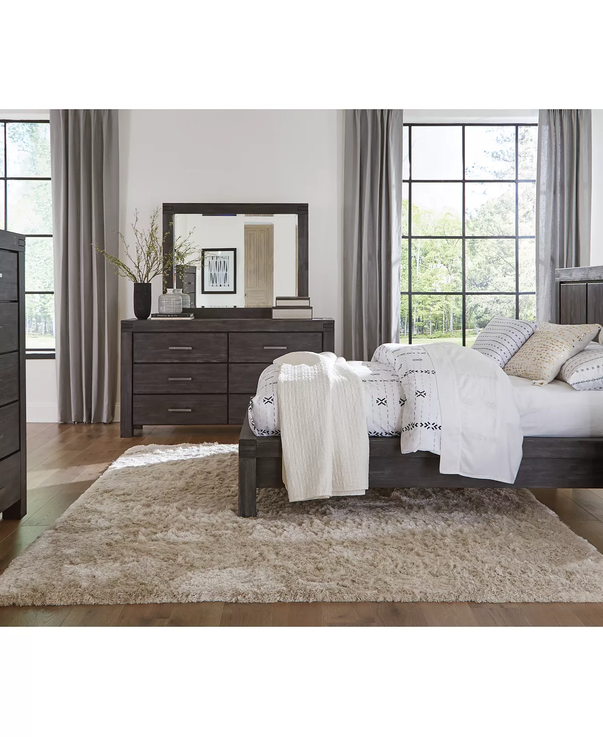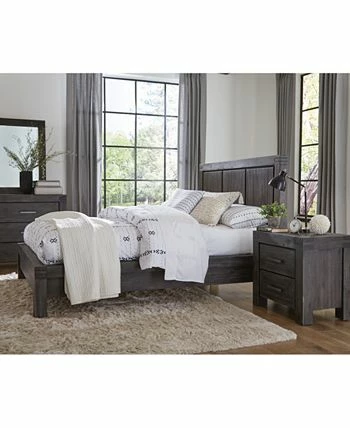 Bring a look to your bedroom that is deliciously rustic with a hint of cosmopolitan chic through this California king bed. Simple, straight lines betray its traditional inspiration while a crisp graphite finish with a rustic glaze adds an element of modern appeal.