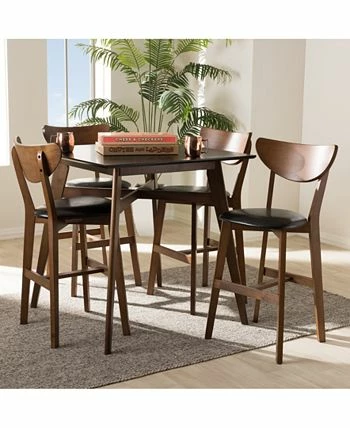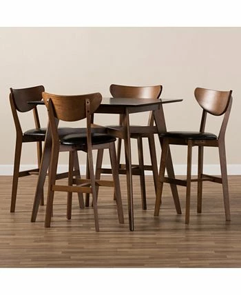 The bold curved backs, sleek legs and rich tones of the versatile chairs and table in this five-piece pub set can infuse the atmosphere of your dining or living space with warm mid-century modern Scandinavian-inspired style and desirable comfort.