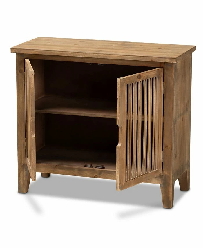 Rustic tones and clean lines make the Clement cabinet featuring two shelves behind two doors to a perfect addition to any space.