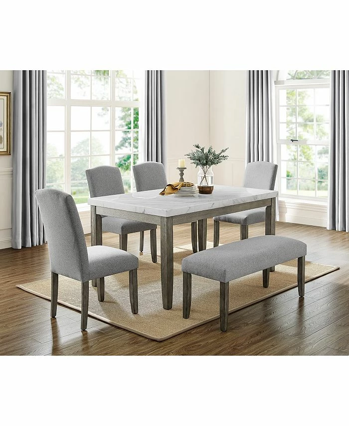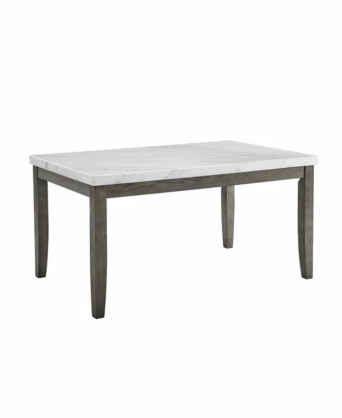 Beautiful transitional styling in a white marble dining table that will add casual elegance to any dining area. The Emily table features a visually seamless natural white marble top that adds grace and looks to everyday dining. The tapered solid wood legs feature a mossy grey finish that offers a subtle neutral contrast to the white marble and gives the table a style that can be dressed up or down depending on design preference. Pair with the Emily Side Chair and/or Bench for a complete dining collection.