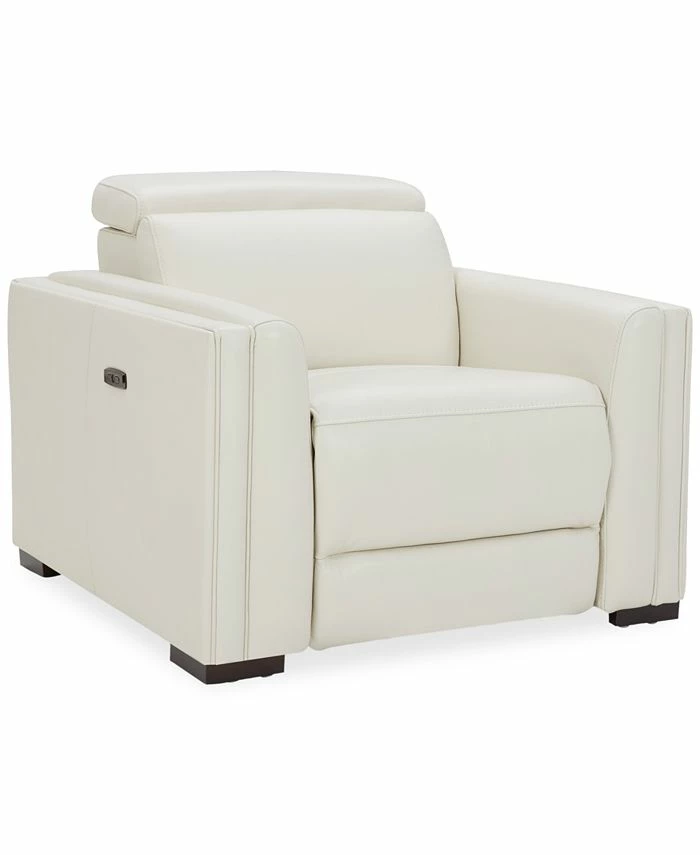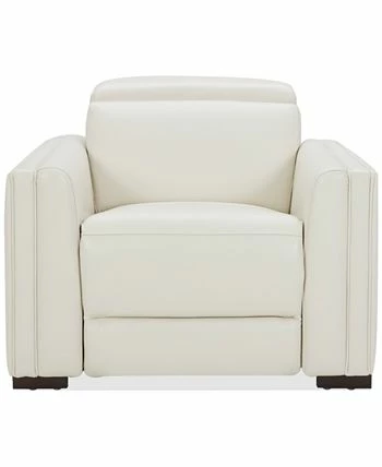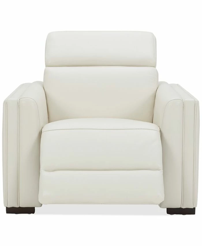From its modern lines to its incredible feel, this recliner redefines luxury. Unique double track arms lend the piece a distinctive look while oversized cushions present minimalist, unfussy fashion. Smooth top grain leather over dense foam delivers a feel that is plush yet supportive, enticing you to sit back and relax. Its power motion design allows you to find your ideal lounging spot. A wonderful piece for upgrading your living space with both contemporary appeal and comfort.