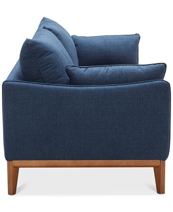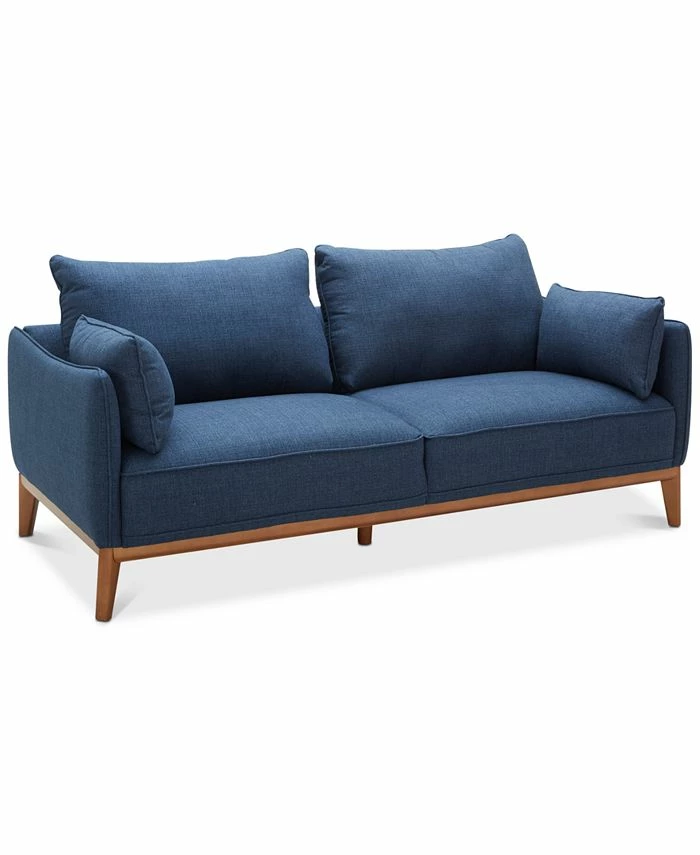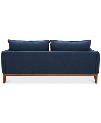 Flared legs, subtly curved arms and bold welting imbue this sofa with a mid-century modern look that is complemented by textural and durable fabric over supremely plush cushions to offer comfort befitting for any space along with enticing nostalgic style.