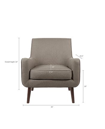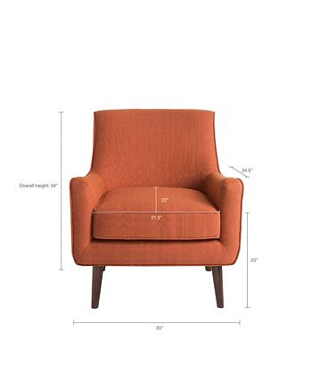 Mid-century lines & a swooping silhouette add a dramatic touch to the cool hue of this accent piece. Espresso-finished tapered legs & a subtly flared back complete the look.