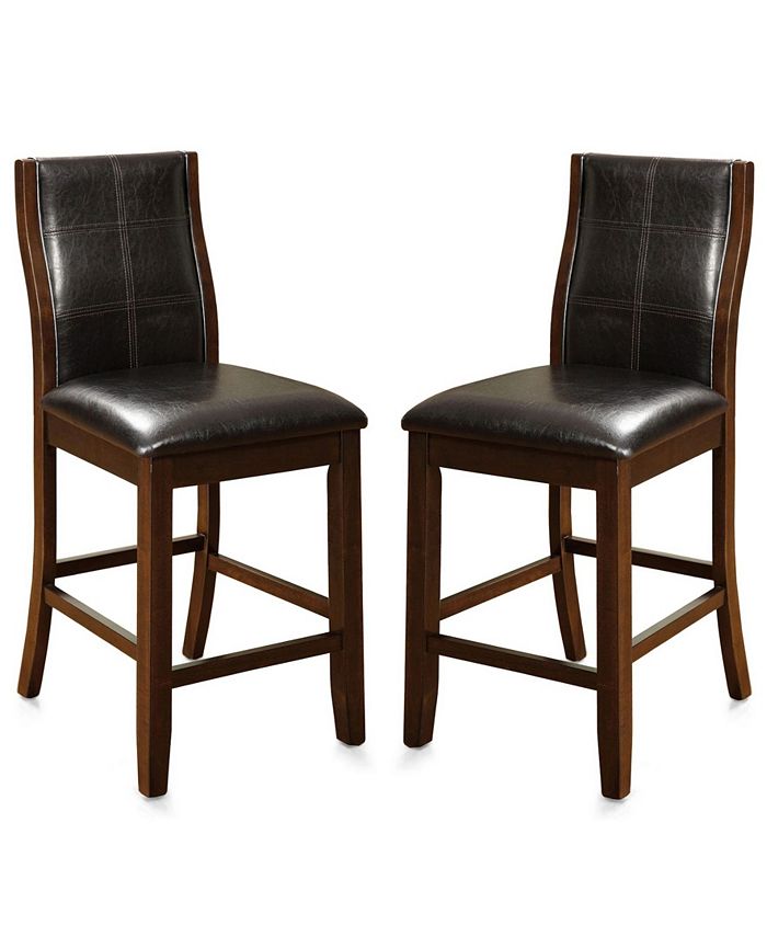 The Egnew Pub Chair captures attention with its stylish grid stitched leatherette upholstery and distinguished Dark Oak finish. Contouring along the back delivers outstanding comfort and support while sturdy solid wood construction provides timeless use.