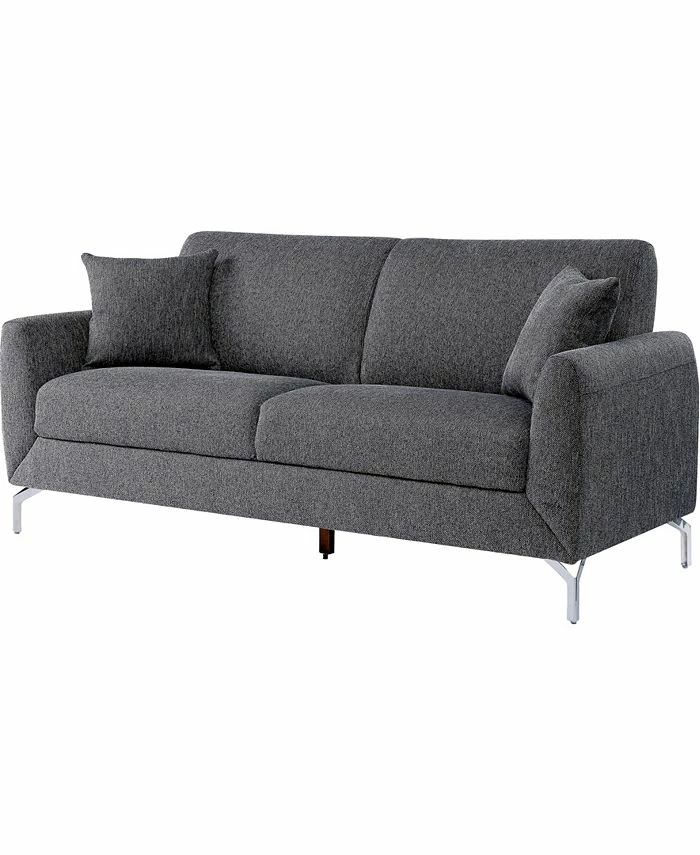 Traditional comfort and modern style come together in this coastal-inspired 3-seater loveseat for your living room. Upholstered in a gray linen-like fabric, it offers relaxed rounded arms and throw pillows with angled metal legs for a touch of visually striking modern style.