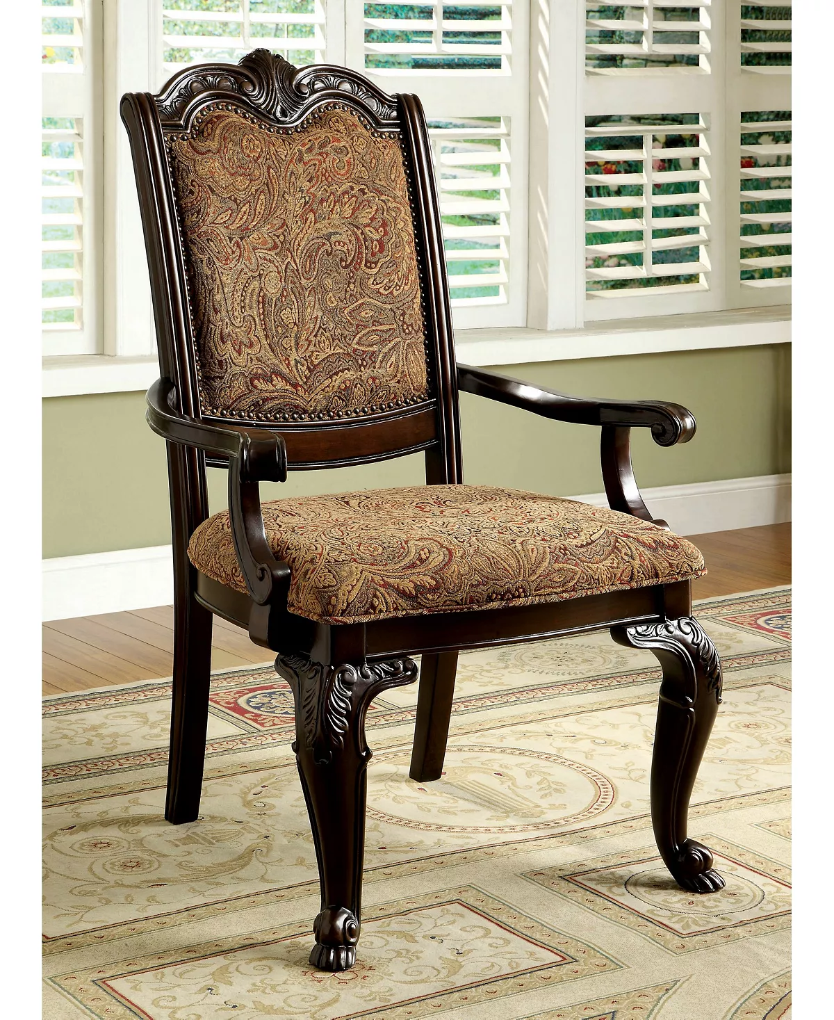 The Ramsaran Arm Chair adds rich detail to your look with its lavish patterned fabric and beautiful floral carvings. The adorned back rest is complemented by scrolled arms to ensure plenty of comfort while cabriole legs offer lasting, long-term strength and support.