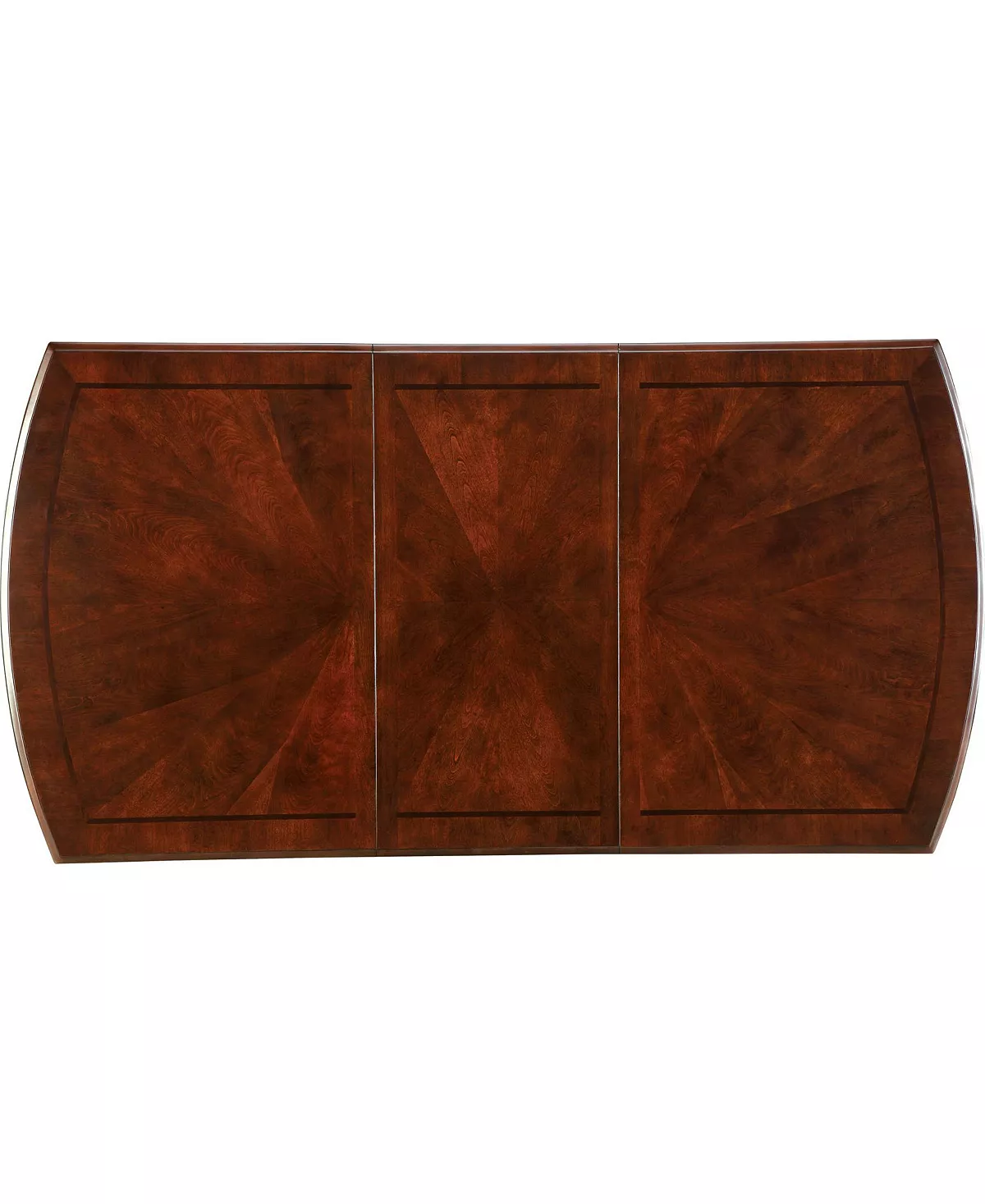 Dramatic elegance takes on a modern feel in this dark cherry finish solid wood dining table. Embrace a clean design with a rectangular top and romantically flared legs, and choose this gorgeous table to flatter a transitional dining space.
