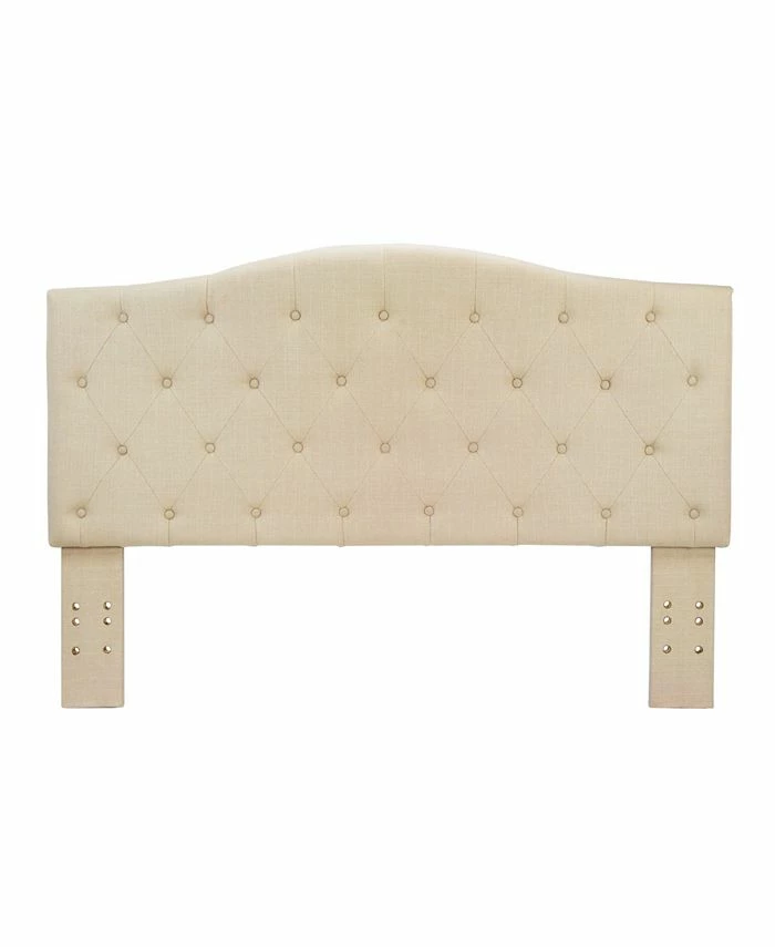 Rest your back on the soft cushioned Saira Fabric Headboard as button tufting accentuates the gorgeous camelback design. The linen-like fabric is lightly textured, adding sophisticated detailing to the overall design. With solid wood construction, the headboard provides strength and lasting durability so your can enjoy this piece for years to come.