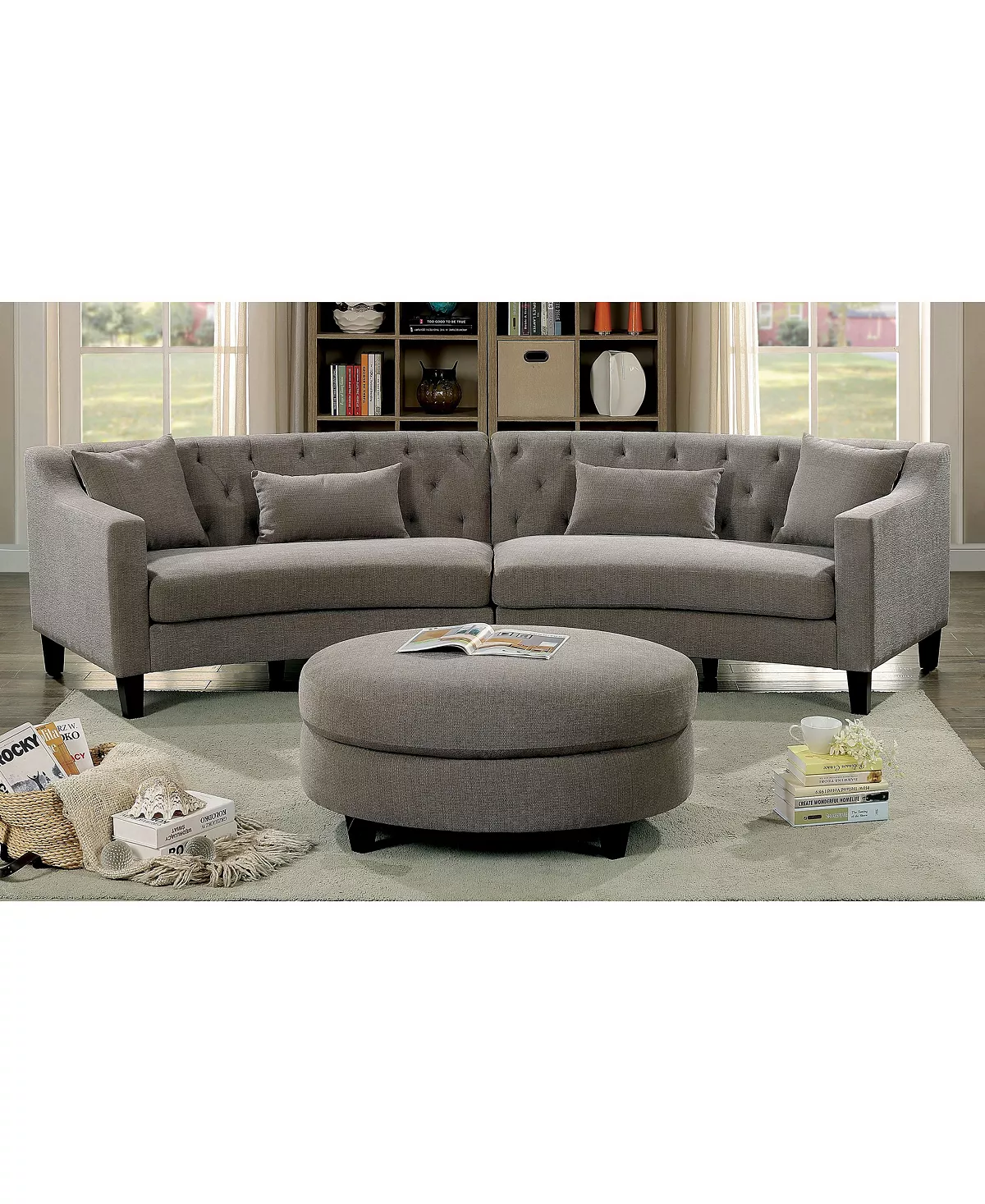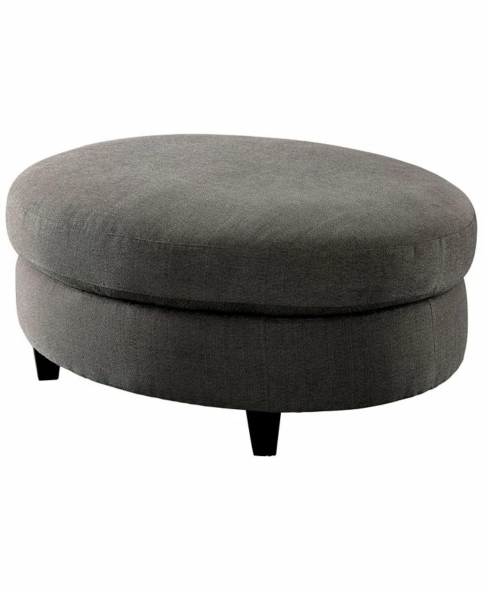 Put your feet up and enjoy relaxing at the end of the day with your new contemporary ottoman! The wide oval top offers a spacious surface to rest your feet or set a book or magazine down for a moment or two. Supported atop a set of tapering black legs, this ottoman is upholstered in a warm gray linen-like upholstery.