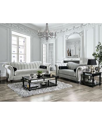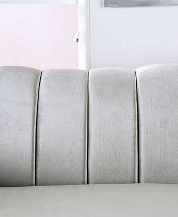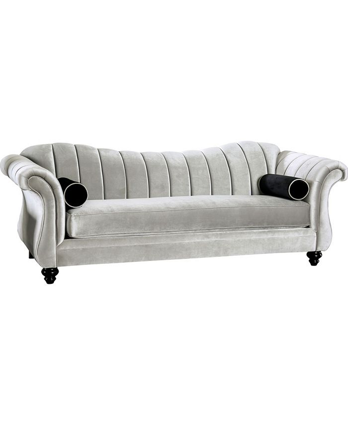 Linear vertical stitching adds a dimensional vibe to this exquisite traditional sofa, a plush piece constructed from solid wood and wrapped in small weave pewter chenille.
