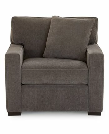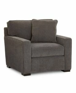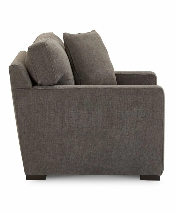 A minimal design boasts impeccable tailoring, track-style arms & a richly textured upholstery, all set on mocha-finished legs.
