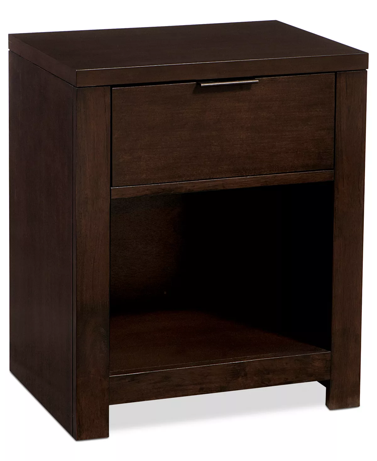 Clean house. From every angle, this contemporary bedroom set keeps a streamlined profile. Stunning birch veneers in a deep mocha finish accentuate the clean lines and calculated details that take center stage in your space.