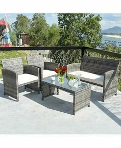Costway 4PCS Patio Rattan Furniture Set Loveseat Sofa Coffee Table Garden