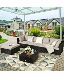 Costway 6PCS Outdoor Patio Rattan Furniture Set Cushioned Sectional Sofa Ottoman