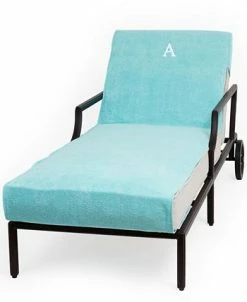 Linum Home Personalized Standard Size 100% Turkish Cotton Chaise Lounge Cover With Side Pockets