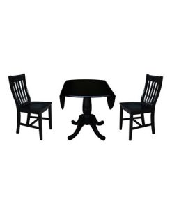 International Concepts 42 Dual Drop Leaf Table With 2 Ladder Back Dining Chairs – 3 Piece Dining Set