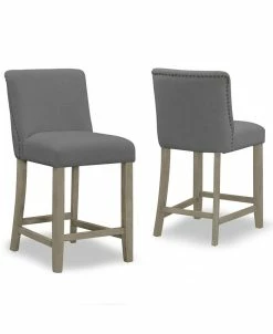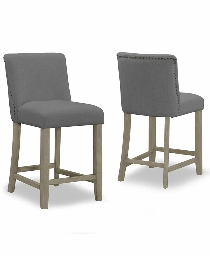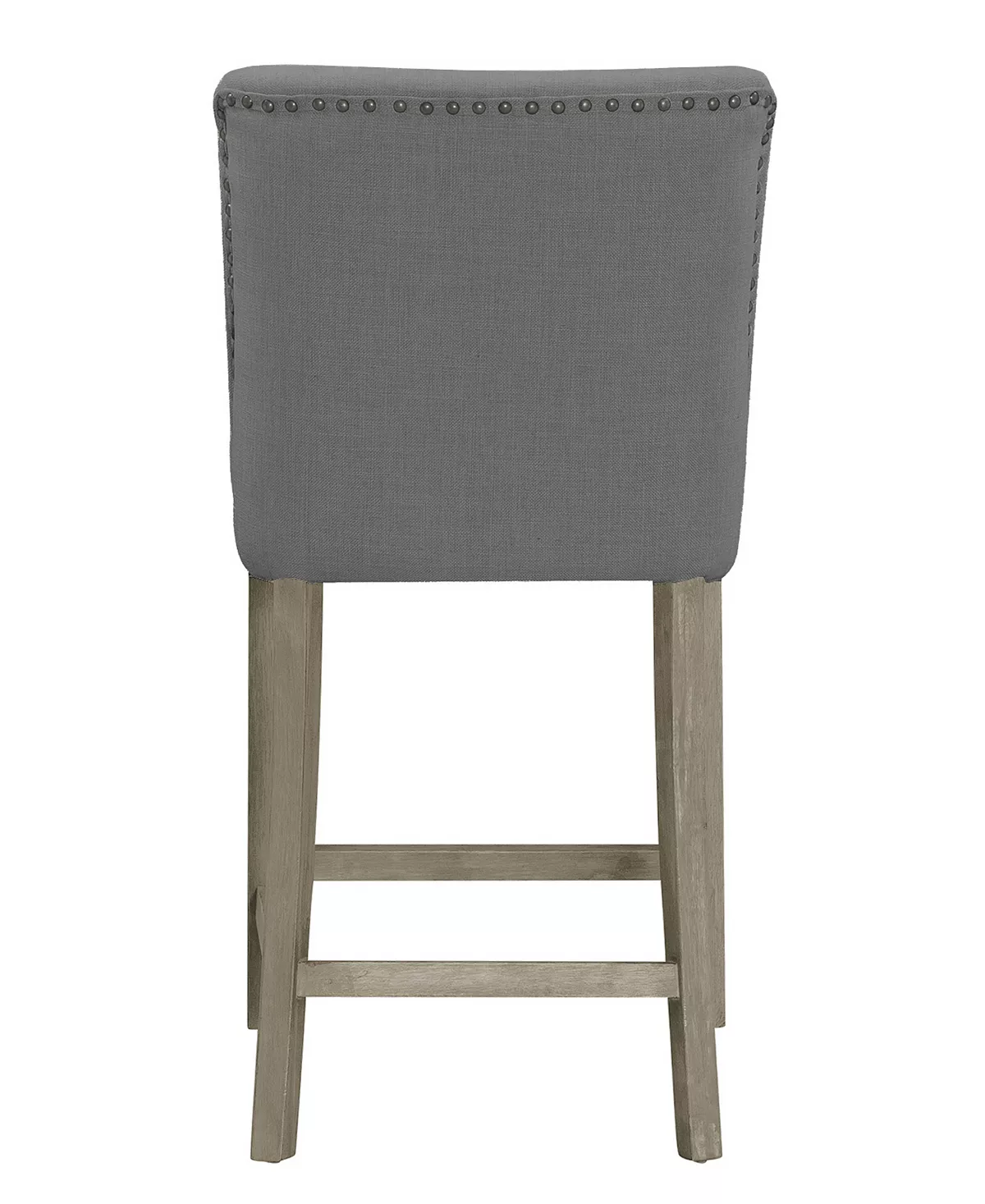 Fabric upholstery, high-density foam cushion, proper footrest, as well as the wood legs guarantee comfortable seating. Chic side wings and tufted buttons complete this stool with style. This stool is of counter height.