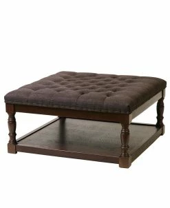 Real wooden legs support the fabric-upholstered tufted top, and foam cushioning offers seating comfort. Put away readings on the open shelf under this classy ottoman.
