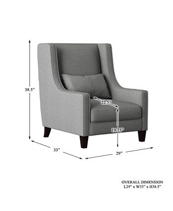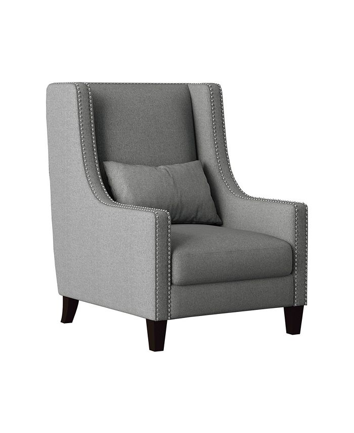 Modern-traditional styling is perfectly executed in the design of the Verona Collection. The high-back profile of this elegant accent chair is defined by nailhead trim and its seating is enhanced by the back-supporting kidney pillow. This accent chair is offered in two fabric options – light gray and dark gray – for versatile placement within your decorative scheme.