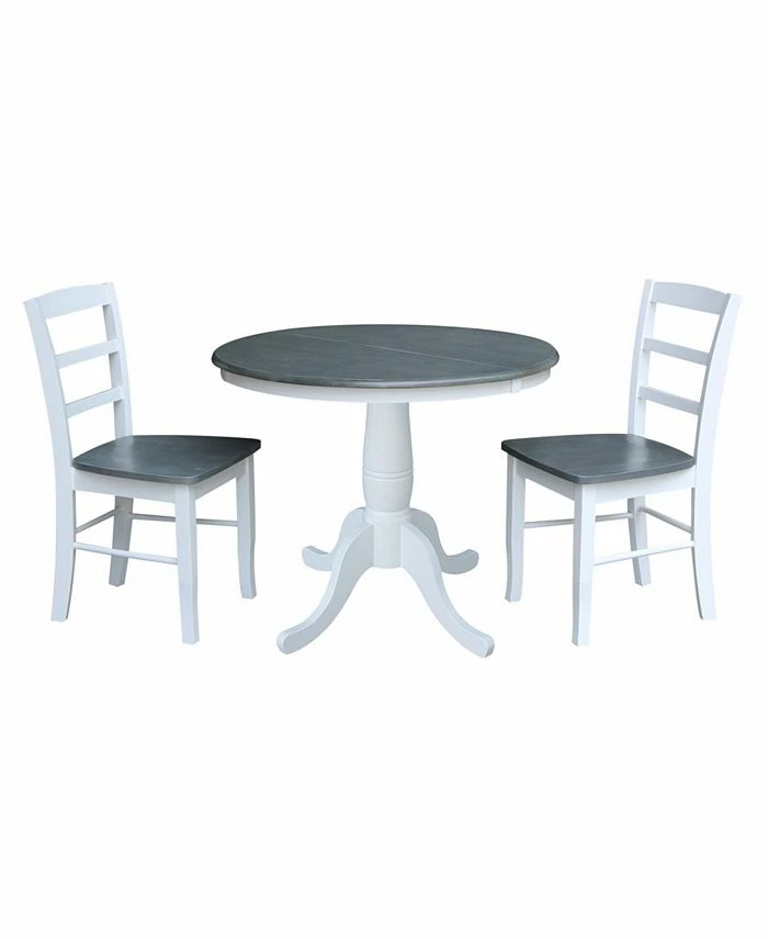 International Concepts 36 Round Extension Dining Table With 2 Madrid Ladderback Chairs, 3 Piece Dining Set