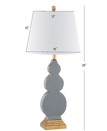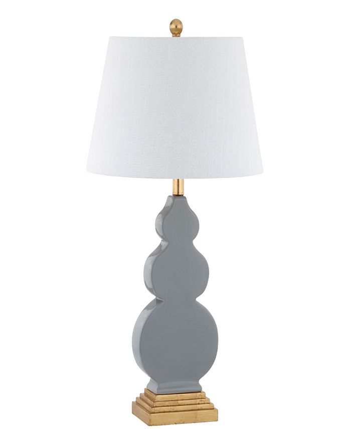 This beautiful tapered triple gourd base ceramic table lamp will brighten up your home with the elegance of contemporary style. Finished in a glossy gray glaze, it is topped with a slightly tapered cotton linen drum shade and gold-tone finial.