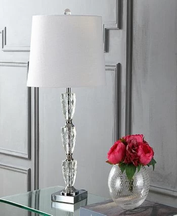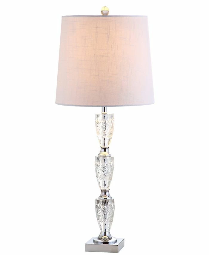 Make room for traditional elegance, as a column of crystal stacks up and sparkles from every angle. The square crystal base of our lamp continues the aesthetic while a slightly tapered linen shade enhances the light’s reflection.