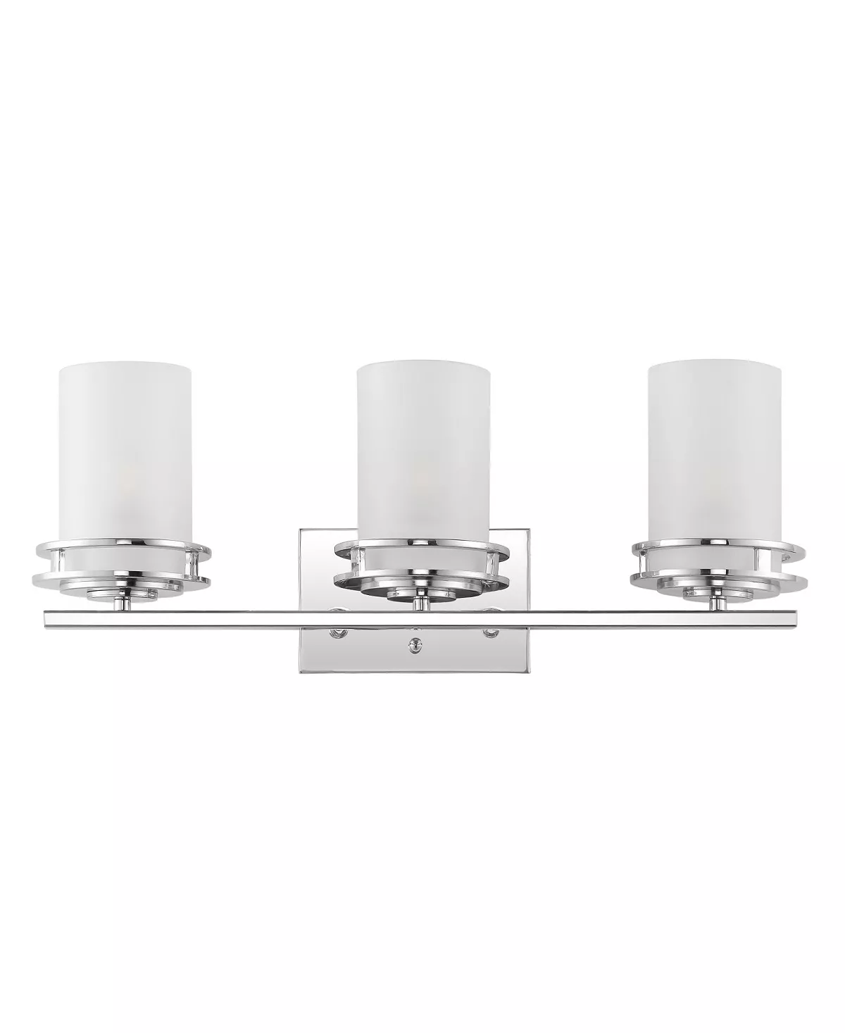 Bring on the modernism with our Art Deco-inspired frosted cylinder wall light. Shining upward, the three LED bulbs provide plenty of light. The sparkling chrome finish adds vintage-like style to your bath vanity, kitchen, hallway, or entry.