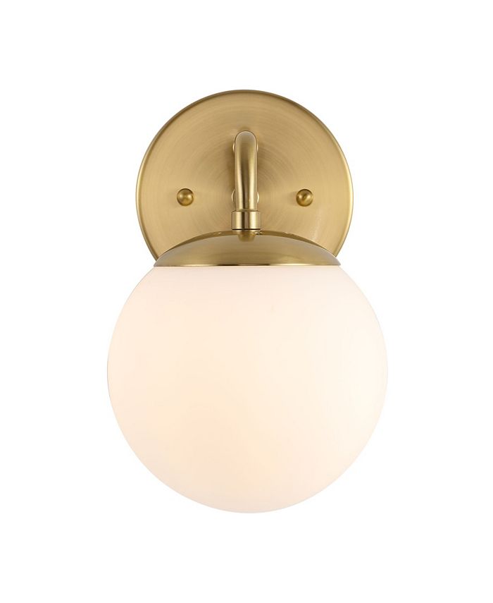 Bring on the vintage-like Parisian flair with our classic bistro wall light. A single frosted glass globe provides plenty of light. Clean lines and a brass finish add modern French bistro style to your bath vanity, kitchen, hallway or entry.