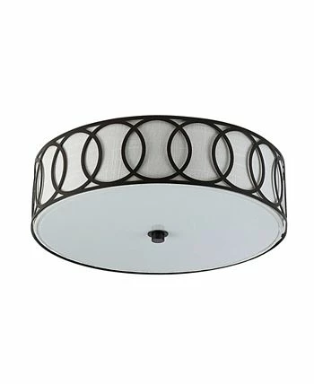 With an open circle frame design, this flush mount ceiling light in a polished oil rubbed bronze finish offers added style and beauty for your living space. The simplicity of a linen shade is accented by the fretwork of overlapping circles cut from metal.