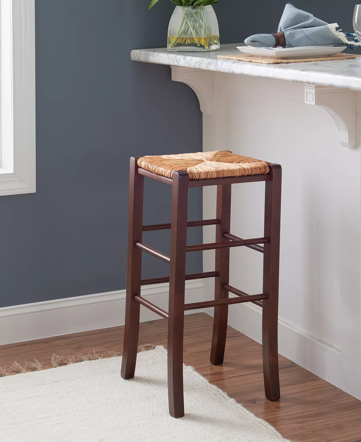 Modest and reliable, this classic bar stool is the unsung hero of countless family gatherings. The solid frame is accompanied by handwoven rush seating as an ode to the countryside and evokes a traditional farmhouse aesthetic.