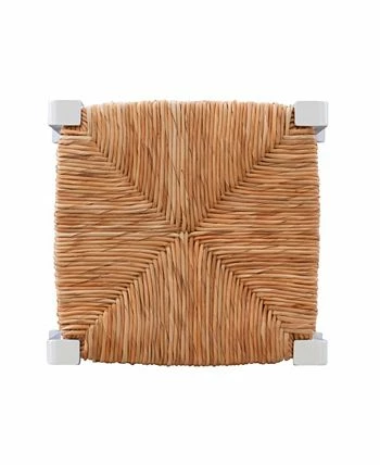 - Natural handwoven rush seat evokes a traditional farmhouse aesthetic