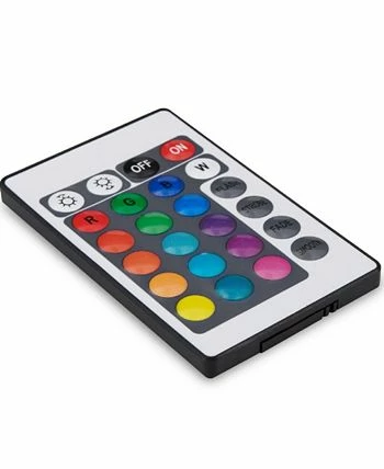 - Illuminated by remote controlled Light Emitting Diode (LED) lighting is positioned under the top shelf and shines in multiple colors