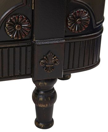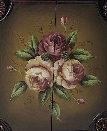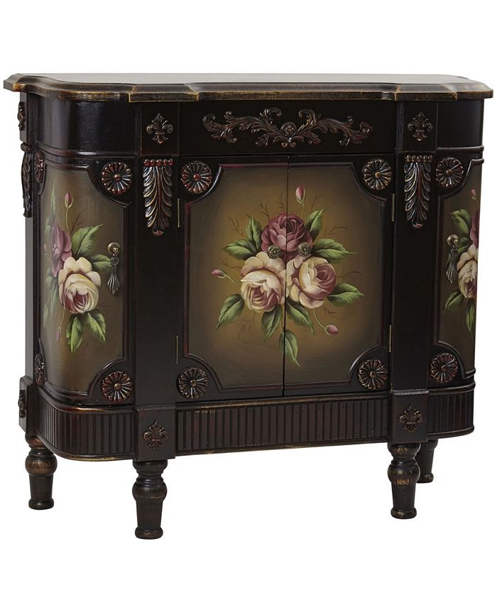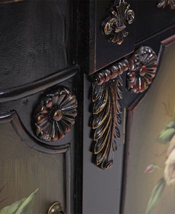 A Victorian vibe that also works in an eclectic setting, Nearly Natural’s French vintage-style floor cabinet features dusty pink peony motifs on each of four doors plus fleur-de-lis, floral and leaf molding.